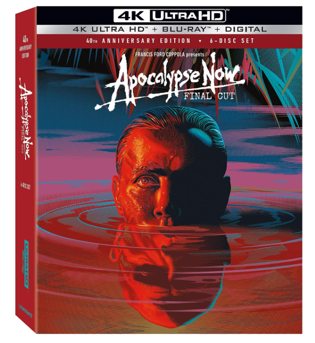 The 4k set is a six-disc set containing two UHD discs and four regular Blu-Ray discs. It includes the theatrical version of the film, which is about 2.5 hours long, the Redux cut, which is about 3 hours and 16 minutes long, and the Final cut, which is just over 3 hours long. Each version is both on a UHD disc and a regular Blu-ray. There are a ton of extras, some of which are new, and some which are carried over from prior DVD releases of the movie, including a discussion between Martin Sheen and Coppola, which was done in 2010 for a prior release, a 1936 radio broadcast of Heart of Darkness (which was a huge inspiration for the movie) narrated by Orson Wells, deleted scenes, and much more. There is also a commentary track by Coppola on the Redux version of the movie, which gives a lot of insight into the process of making the movie, including how George Lucas was supposed to direct it before he started making Star Wars and how Coppola made a lot of it up as he was shooting the movie, and was not working off a finished script.